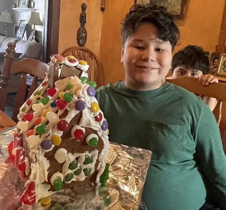 This year Fox and Theo wanted to make a gingerbread house. I have a new respect for those builders. Ours is a little wonky but we had a lot of fun. The boys were especially detailed oriented with the gingerbread boys and girls. Let your imaginations run freely.